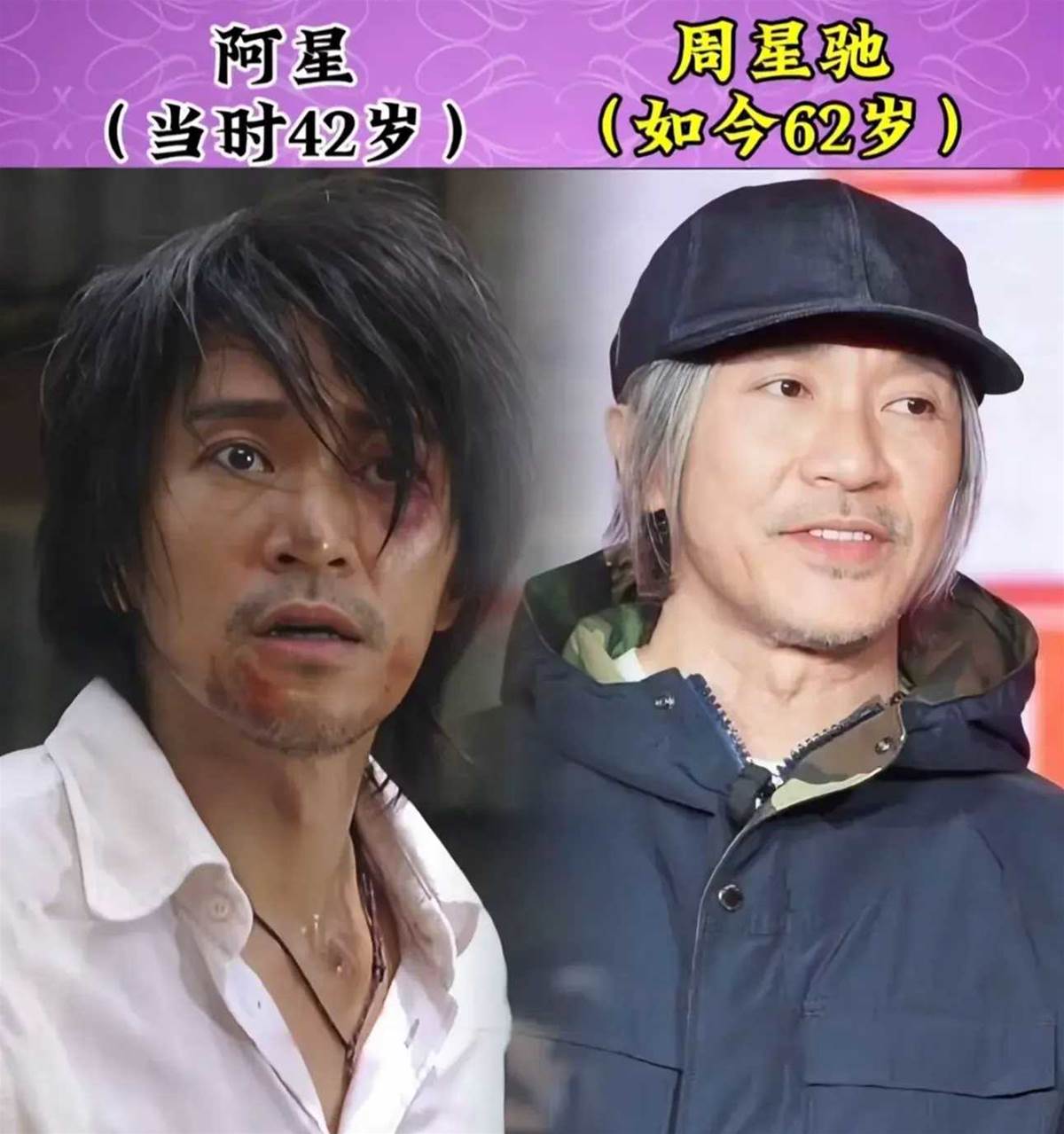 周星馳雖然才62歲,但是好像是所有演員中最老的一個,滿頭的白發,看著特別的沒有精神,如今再也沒有出現在熒幕之中,實在是令人惋惜。