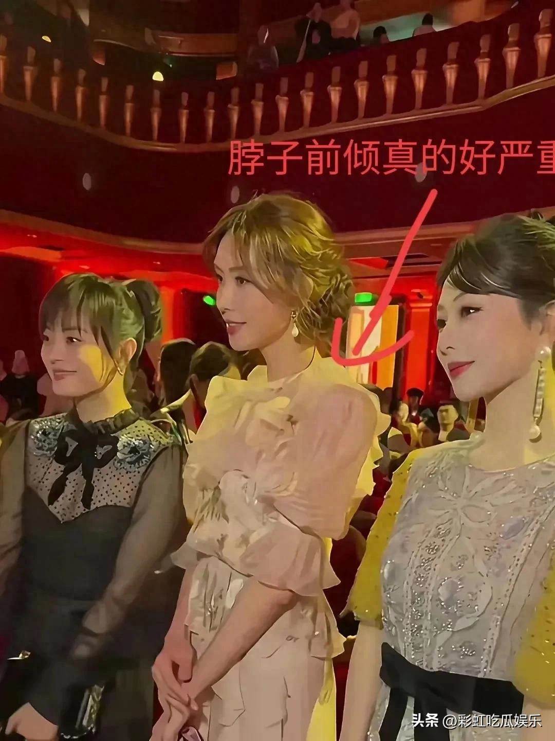 以前是落落大方的女王范兒,現在卻是頭前傾偷感十足,體態畏畏縮縮,完全不像女明星該有的體態。