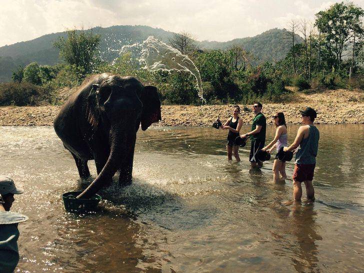仔細看潑出去的水,在空中形成的圖像是不是很像象頭。